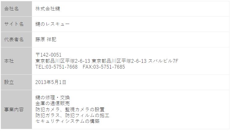 水戸の当鍵屋の会社概要です